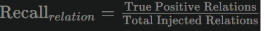 where precision reflects correct entity spans and recall captures all injected entities detected.
