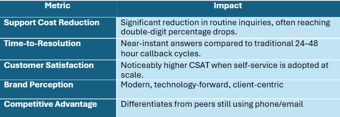 Note on Impact Metrics: The support cost reduction figures and adoption trends cited in this section reflect directional industry patterns observed in early AI-powered self-service implementations, analyst commentary, and vendor case studies. Actual results vary significantly based on query complexity, knowledge base quality, user adoption, and organizational context. Treat these as illustrative benchmarks rather than guaranteed outcomes.