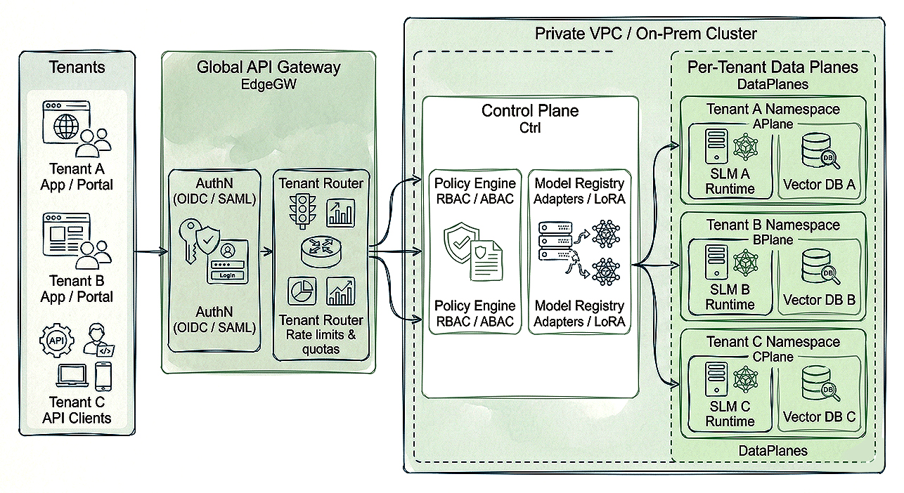 This article is a technical architecture guide for enterprise teams planning sovereign AI deployments with on-premise small language models (SLMs) that must guarantee 100% client data privacy, regulatory compliance, and predictable cost/performance at scale.